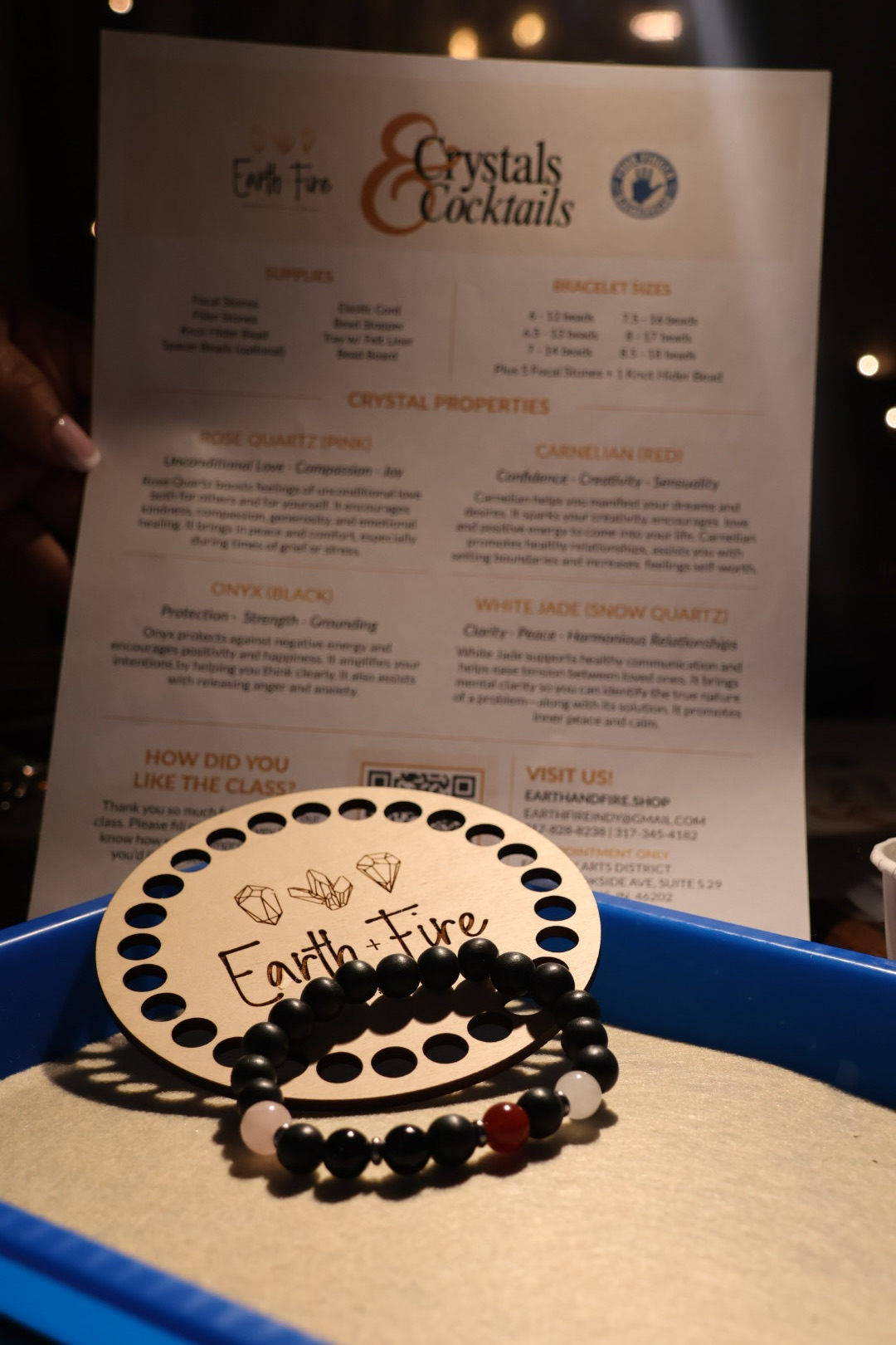You’ll create a one-of-a-kind crystal bracelet using a curated mix of stones chosen specifically for this theme. You’ll be able to choose five crystals to mix and match, then pair them with either Natural Black Wood, White Wood, or Lava Stone beads to create your very own meaningful piece.
