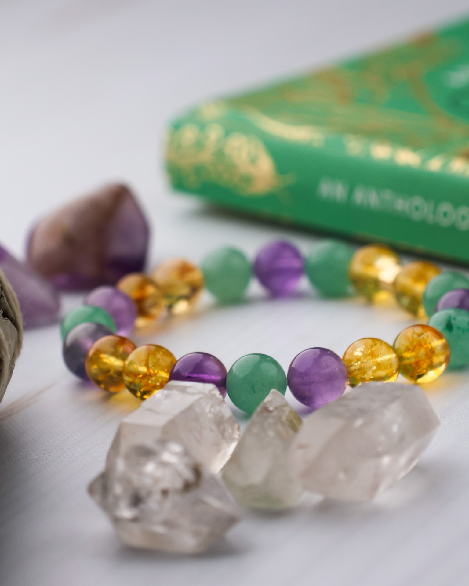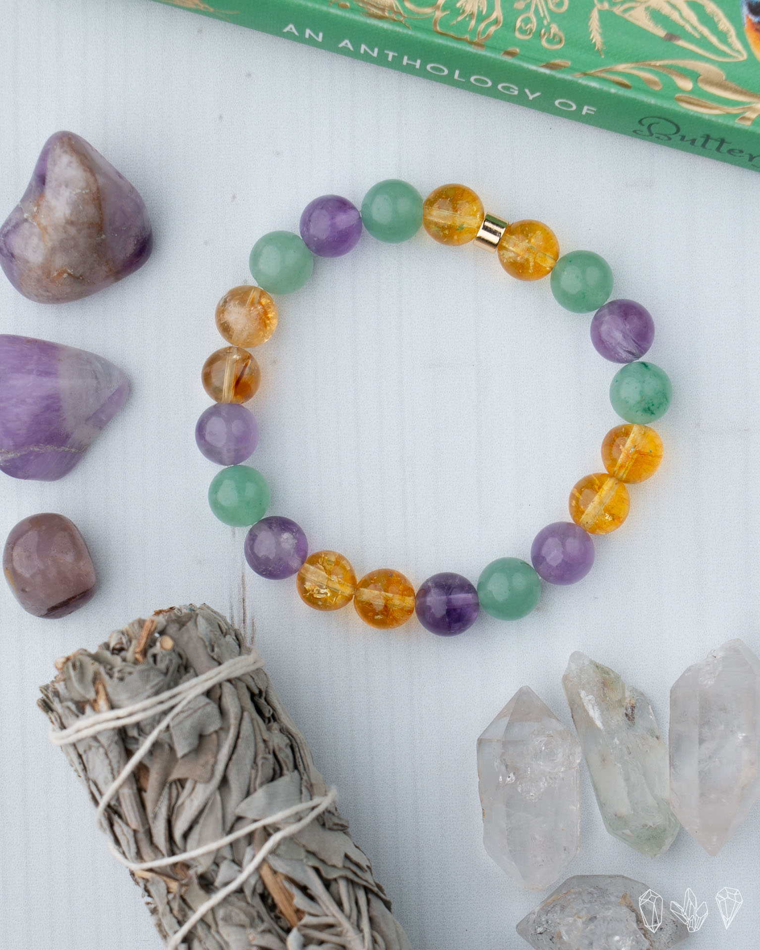 Amethyst +Green Aventurine + Citrine Handmade Bracelet
