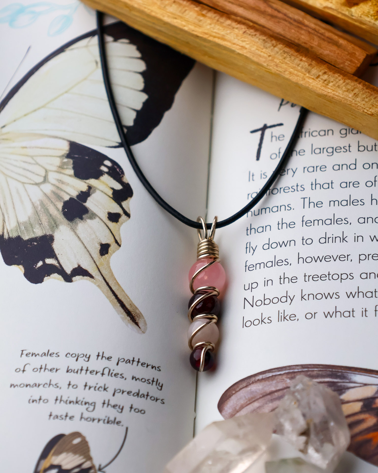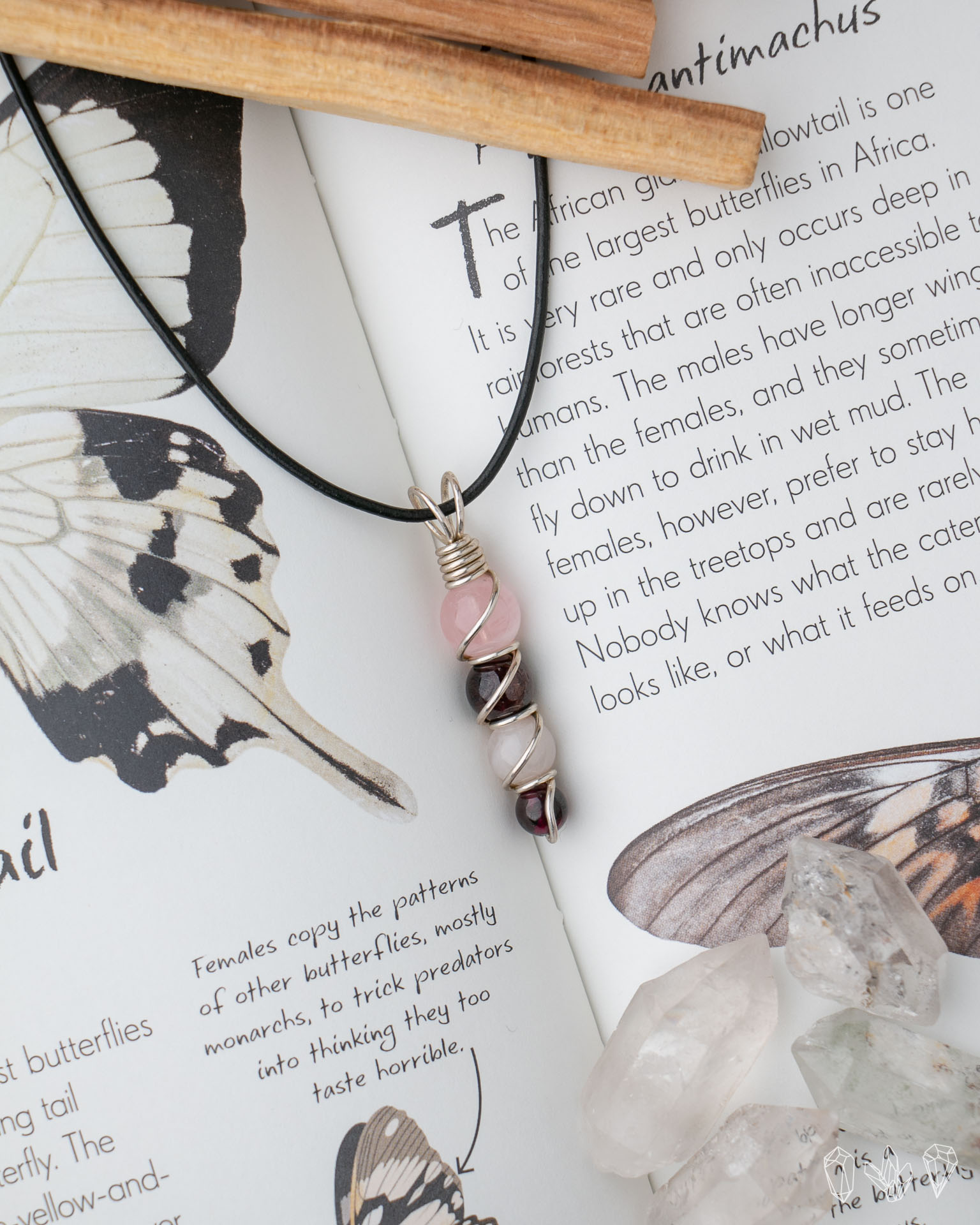 Rose Quartz + Garnet + Moonstone Pendant (Sterling Silver)
