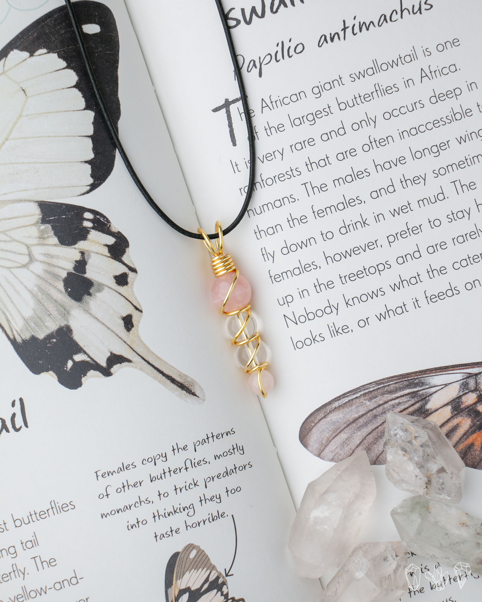 Rose Quartz + Quartz Crystal Pendant Necklace w/ Gold Plated Accents